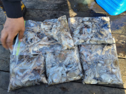 태극1호 ( 아버지 ) 선박천수만권 포인트 주꾸미 조황입니다.바람으로 인해 오전 고생하고오후에 피딩걸려 잡기 시작했습니다.사이즈 문꾸미!!지퍼팩수 기본 이상 나옵니다.주말 출항 문의 주시기 바랍니다.